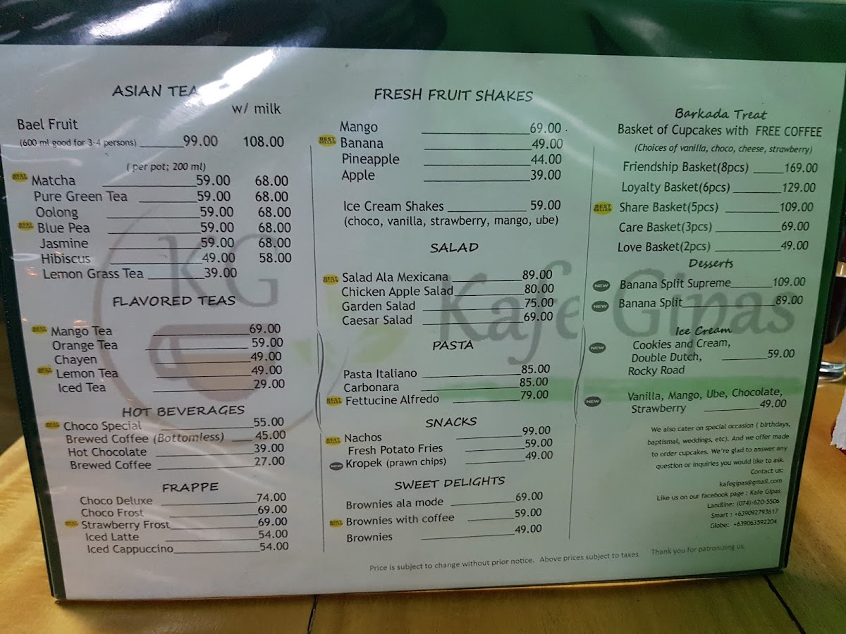 Introducing Kafe Gipas, a hidden gem located in La Trinidad, Benguet, this cozy café offers a delightful array of food and beverages that cater to diverse tastes. Their cakes and pastries are a standout, featuring freshly baked cheese cupcakes in various portions—from the Love Basket at just ₱89 to the Friendship Basket priced at ₱209. For heartier meals, try their savory rice offerings like the grilled pork and home-style sautéed pork, both priced around ₱206 to ₱209.
